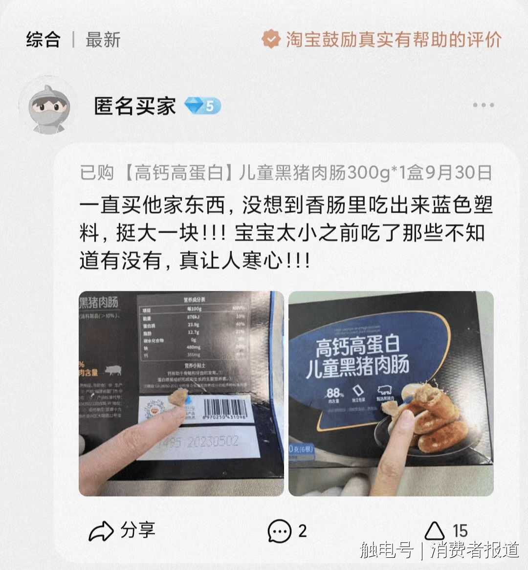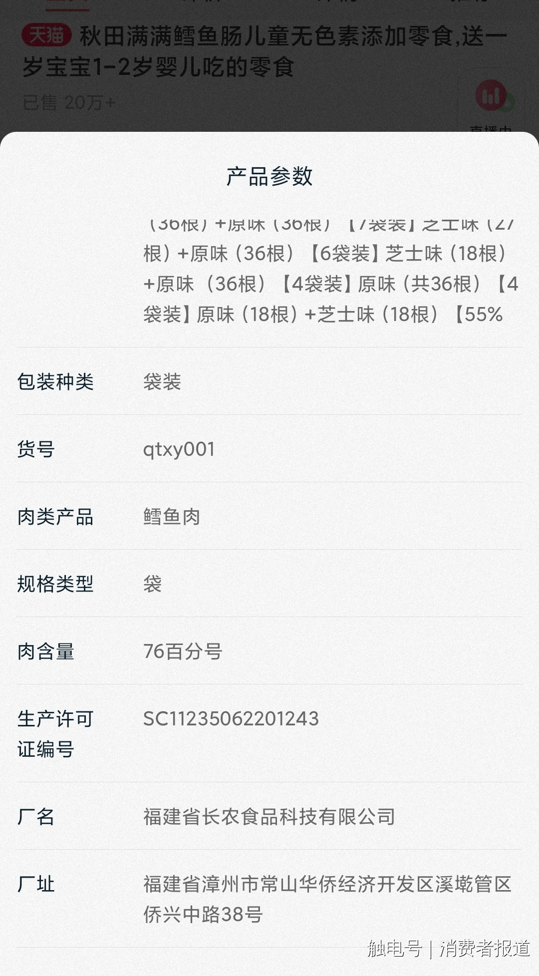 工场的出产车间为封锁式,现实上,正在产物页面显示的细致参数中,经现场勘查、频频核实,此外,消费者称吃到了异物。所以剪开了。
