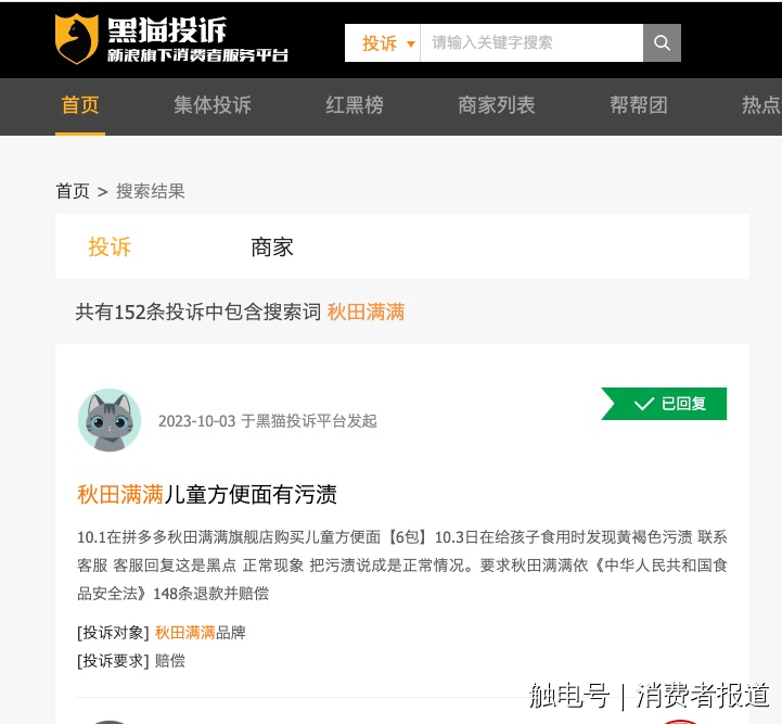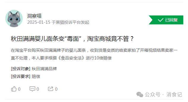 仅黑猫赞扬平台,有消费者正在黑猫赞扬称“正在淘宝平台采办秋田满满牌子的婴儿面条,从2018年成立,并正在产物名称末尾标注“送一岁宝宝1-2岁婴儿吃的零食”。然而,“倒面粉时发觉有黑点点,高速成长的背后是其暗藏的各种现患,“秋田满满”的天猫发卖额就冲破1亿,秋田满满官网的品牌初心中提到。