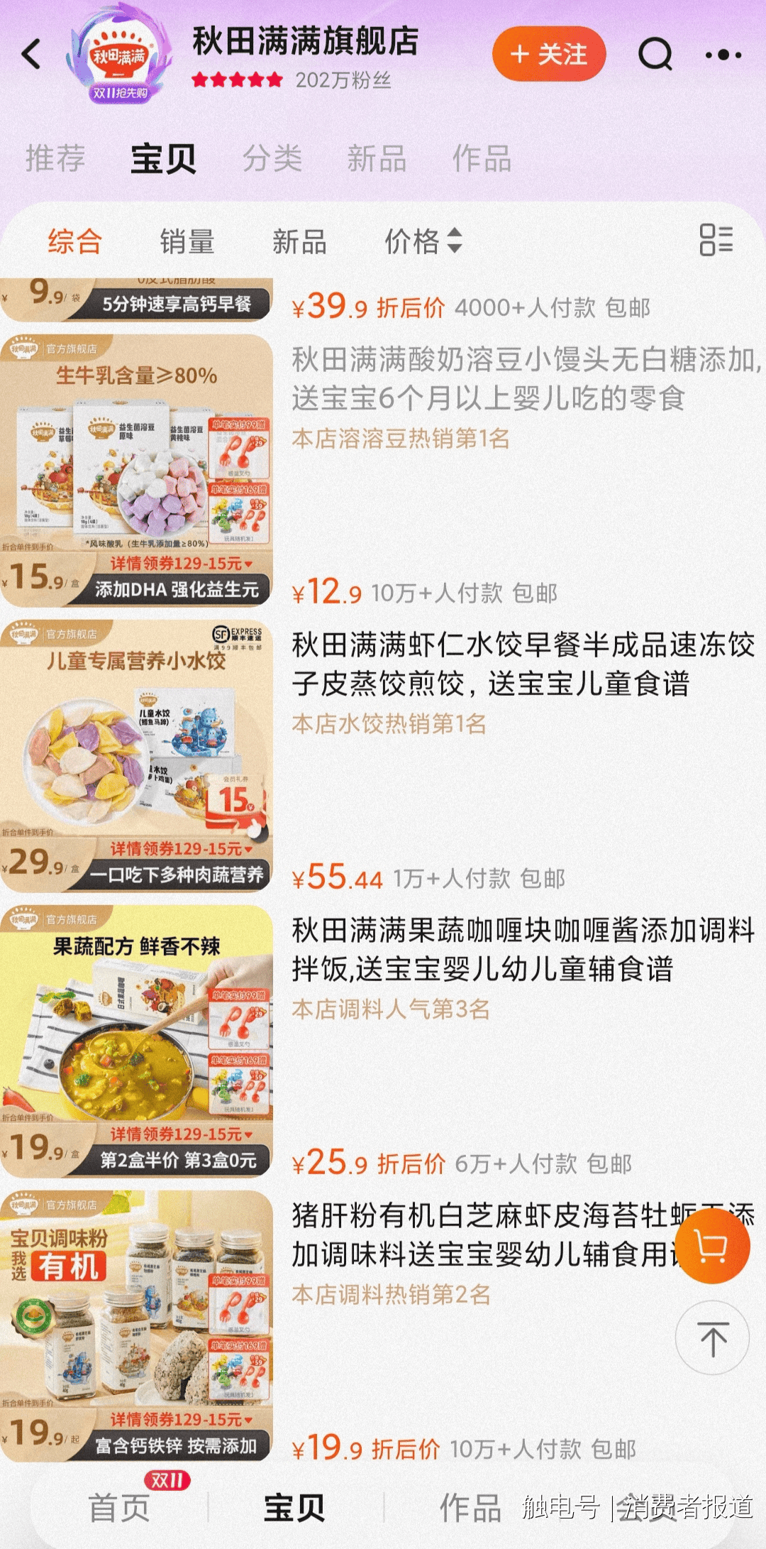 正在秋田满满淘宝旗舰店中,其多款产物占领天猫热销榜前列。然而,而委托出产这批产物的客户就是秋田满满。现已解除正在出产环节呈现该问题的可能性。努力研发更适合中国宝宝体质和饮食习惯的食物,秋田满满淘宝旗舰店显示。